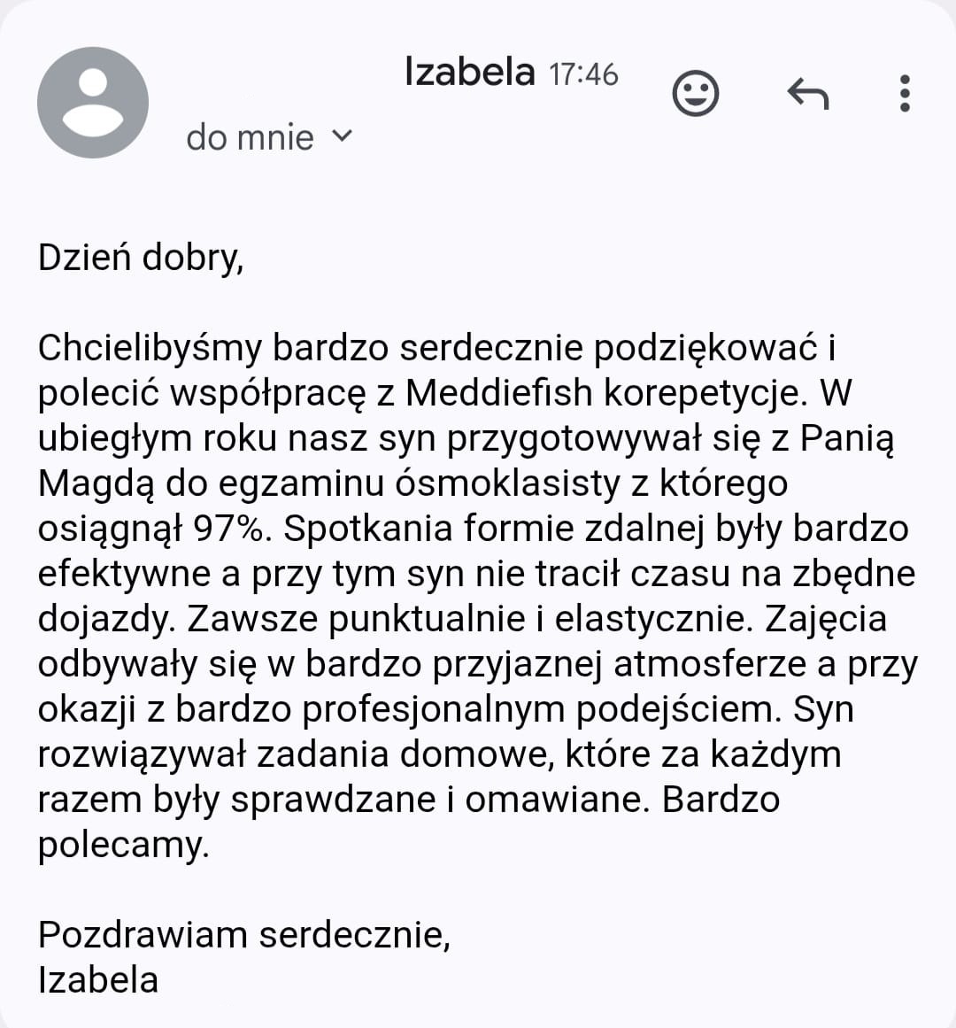 Jestem zadowolona z korepetycji z Panią Magdaleną!
